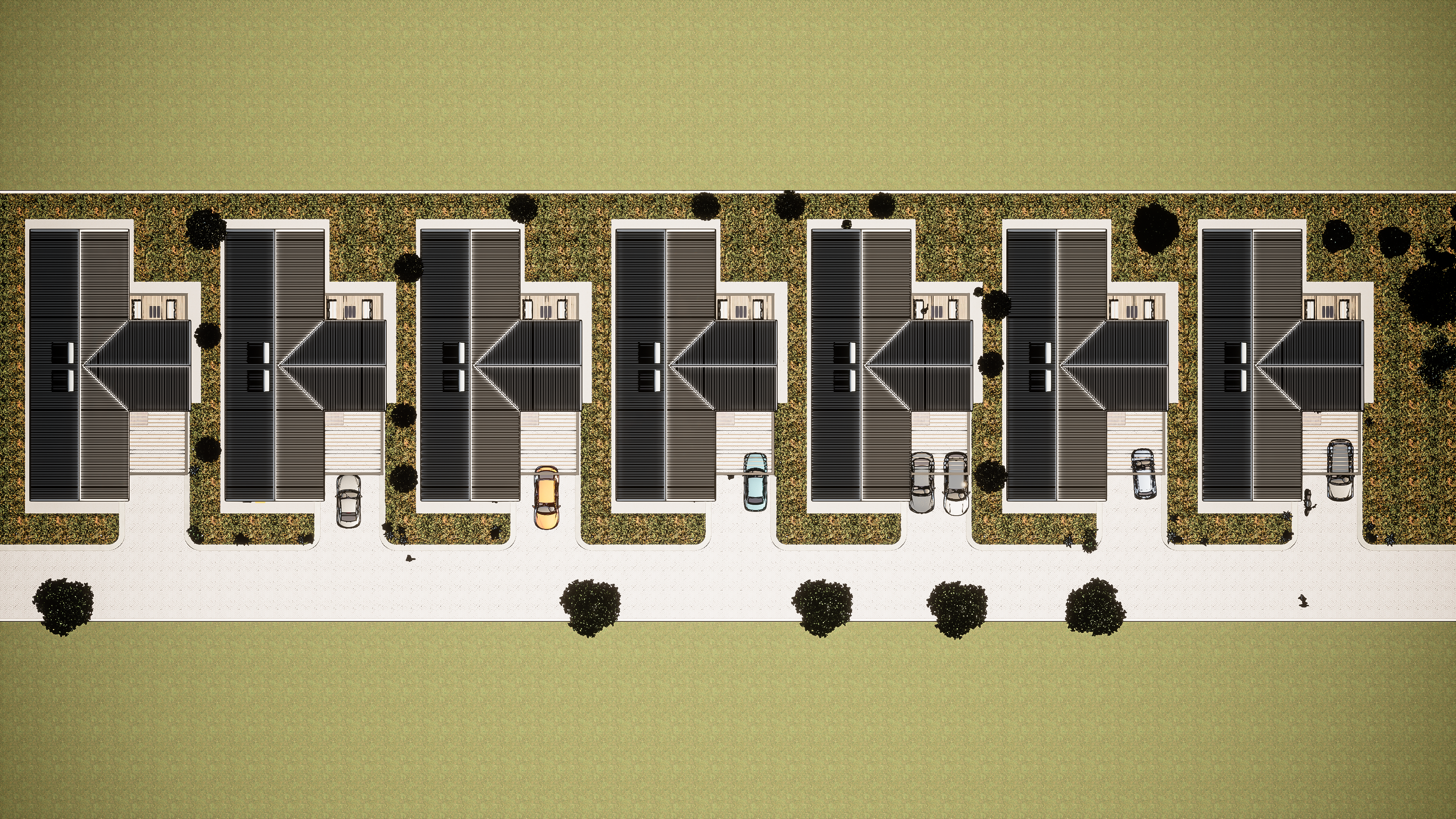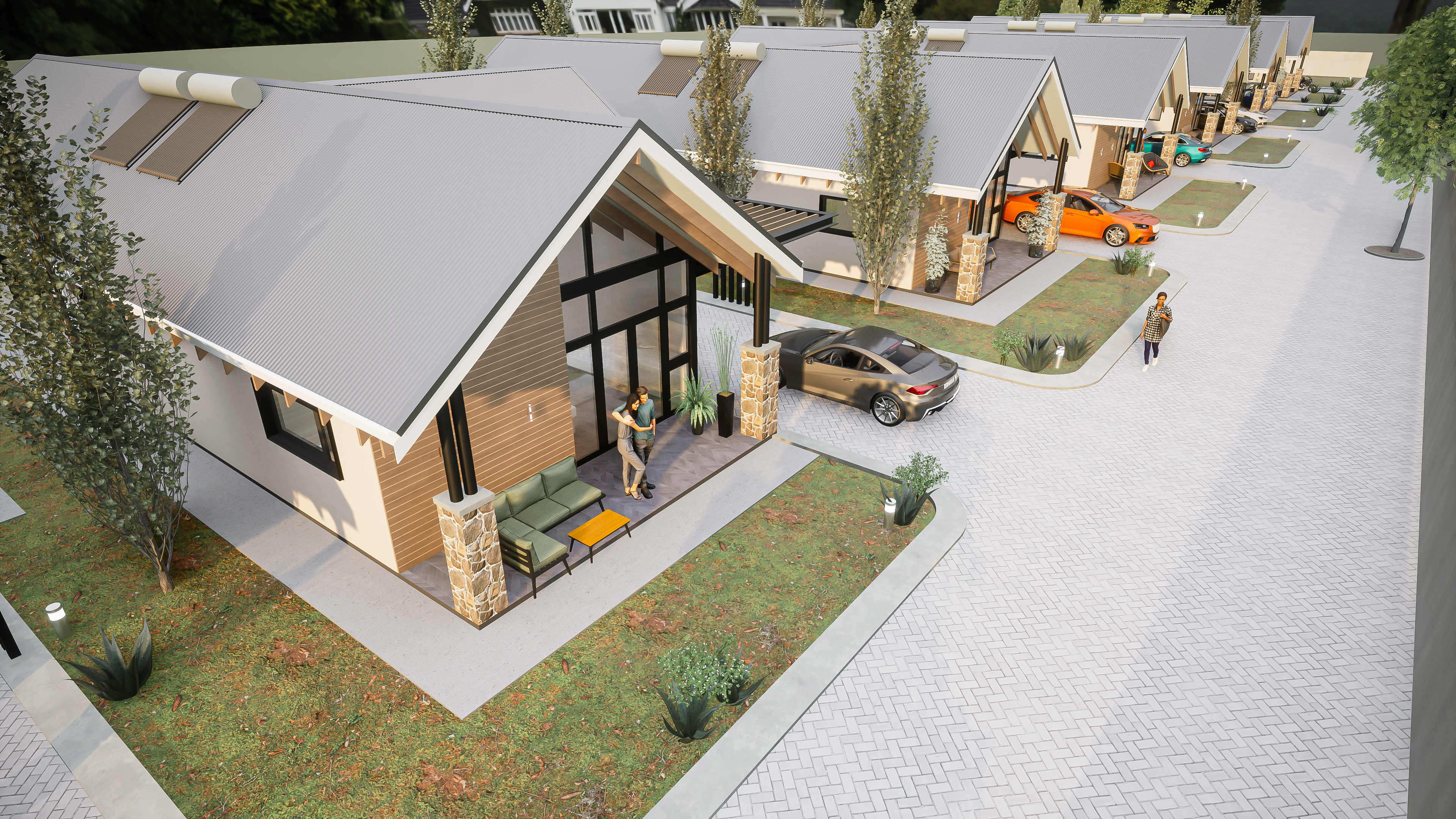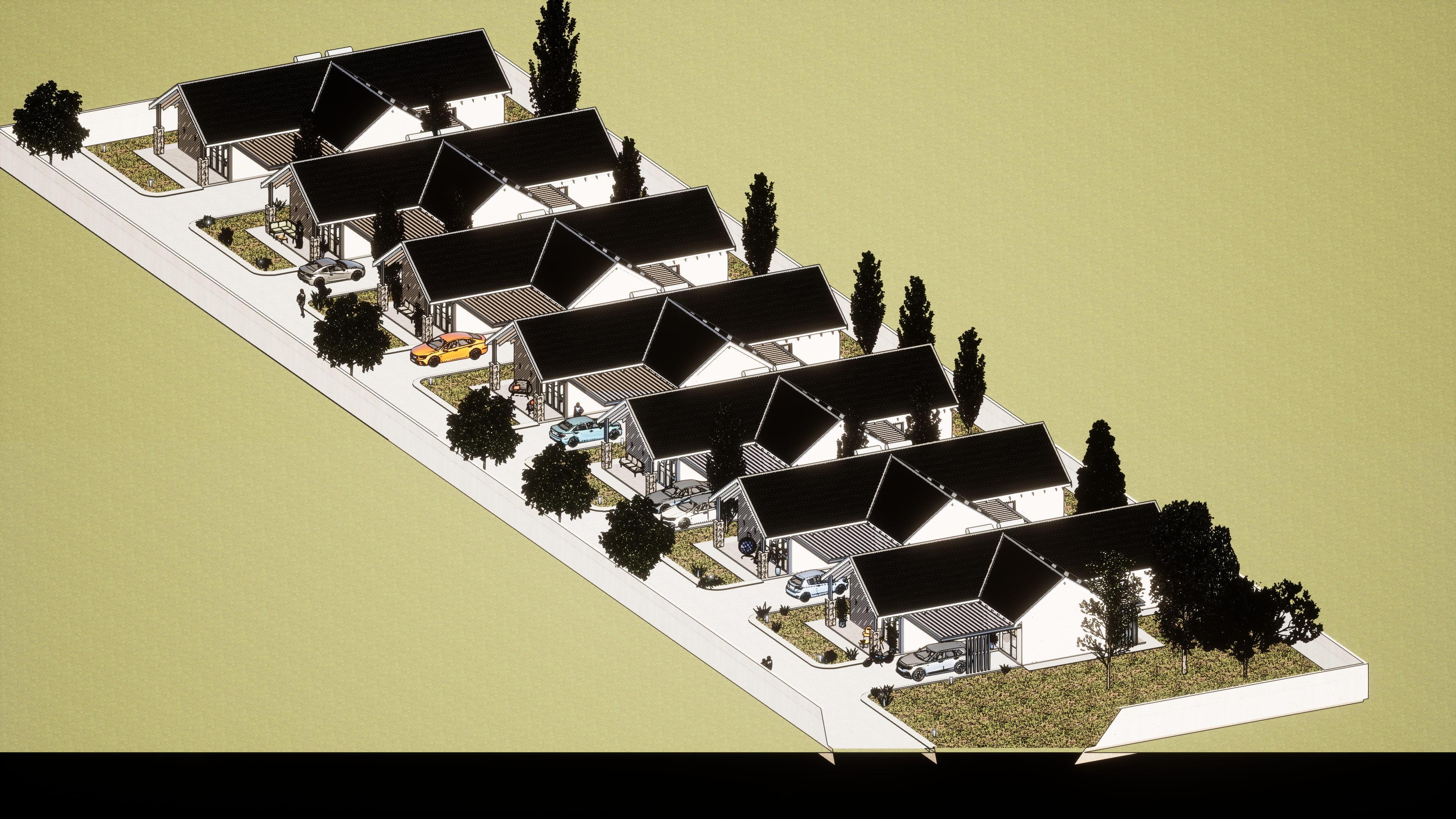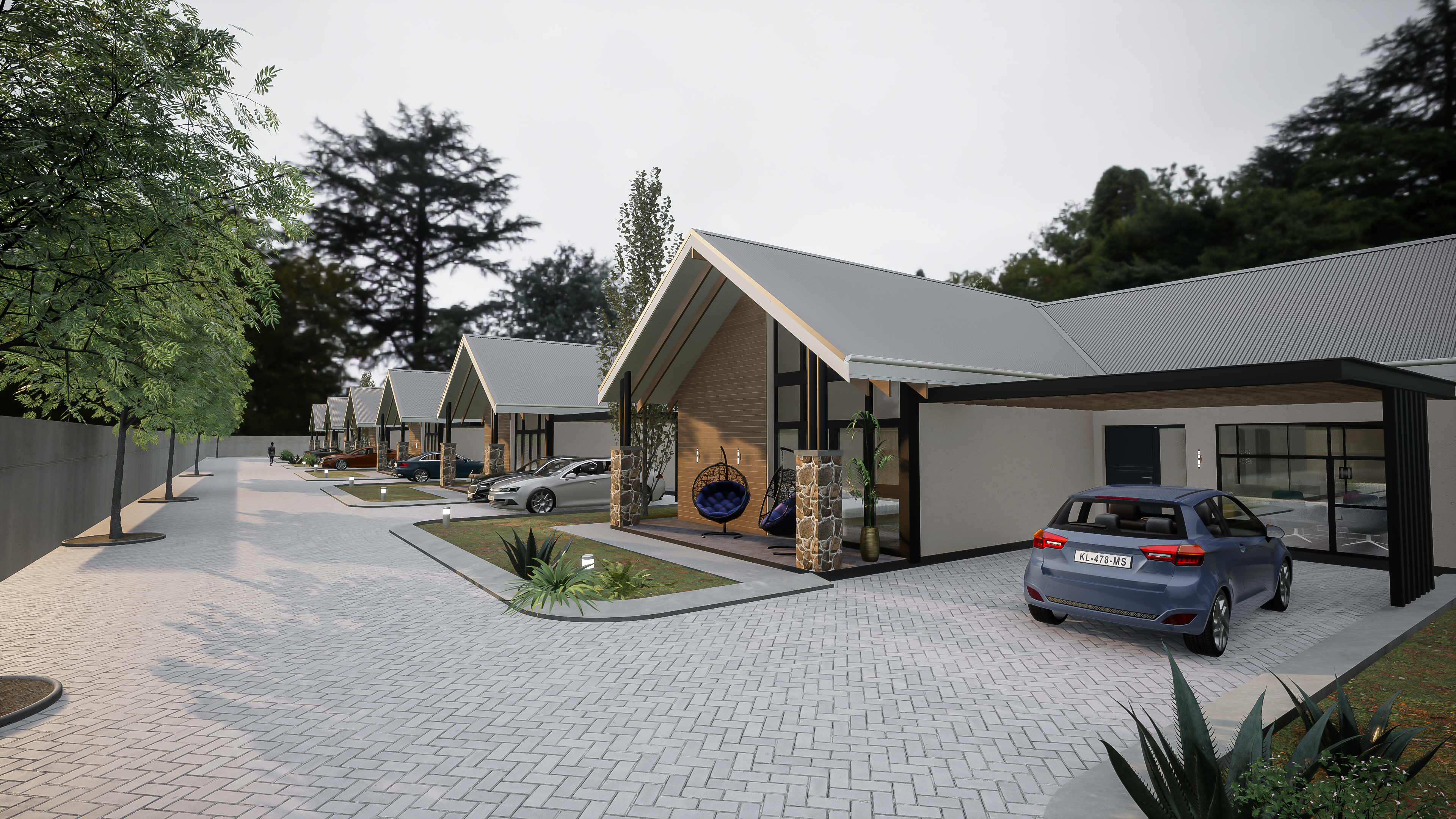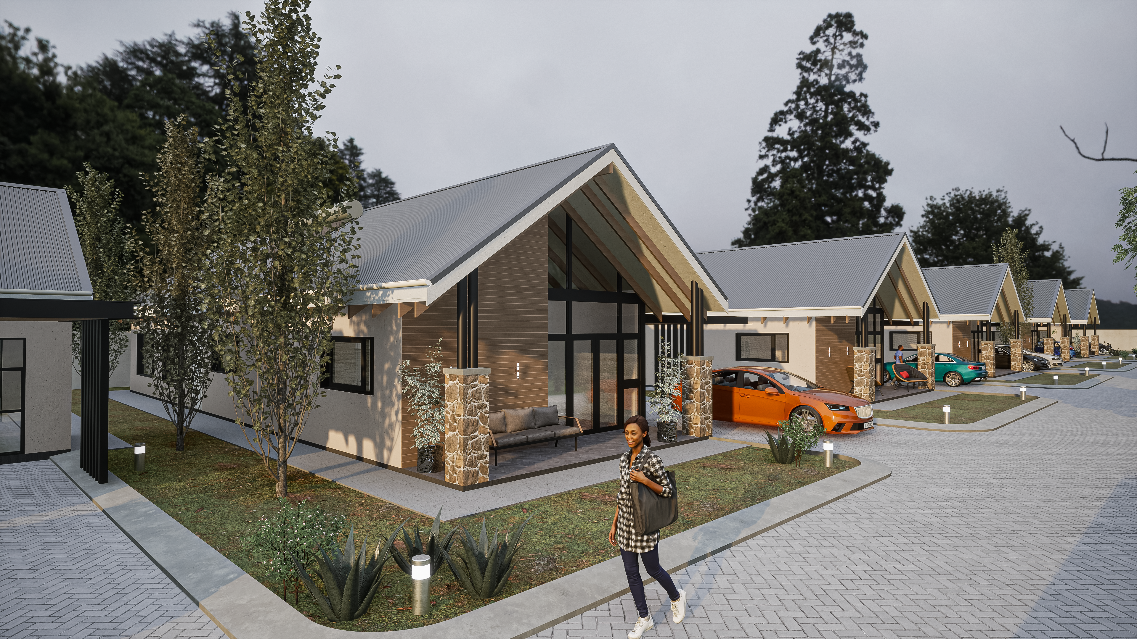 Cluster affordable family 3 bedroom residents , these functional homes combine natural and local materials With sleek gabled roofs, large glass facades, this development brings tranquility and style to suburban living construction to projected to start early 2025. ๐ฟ