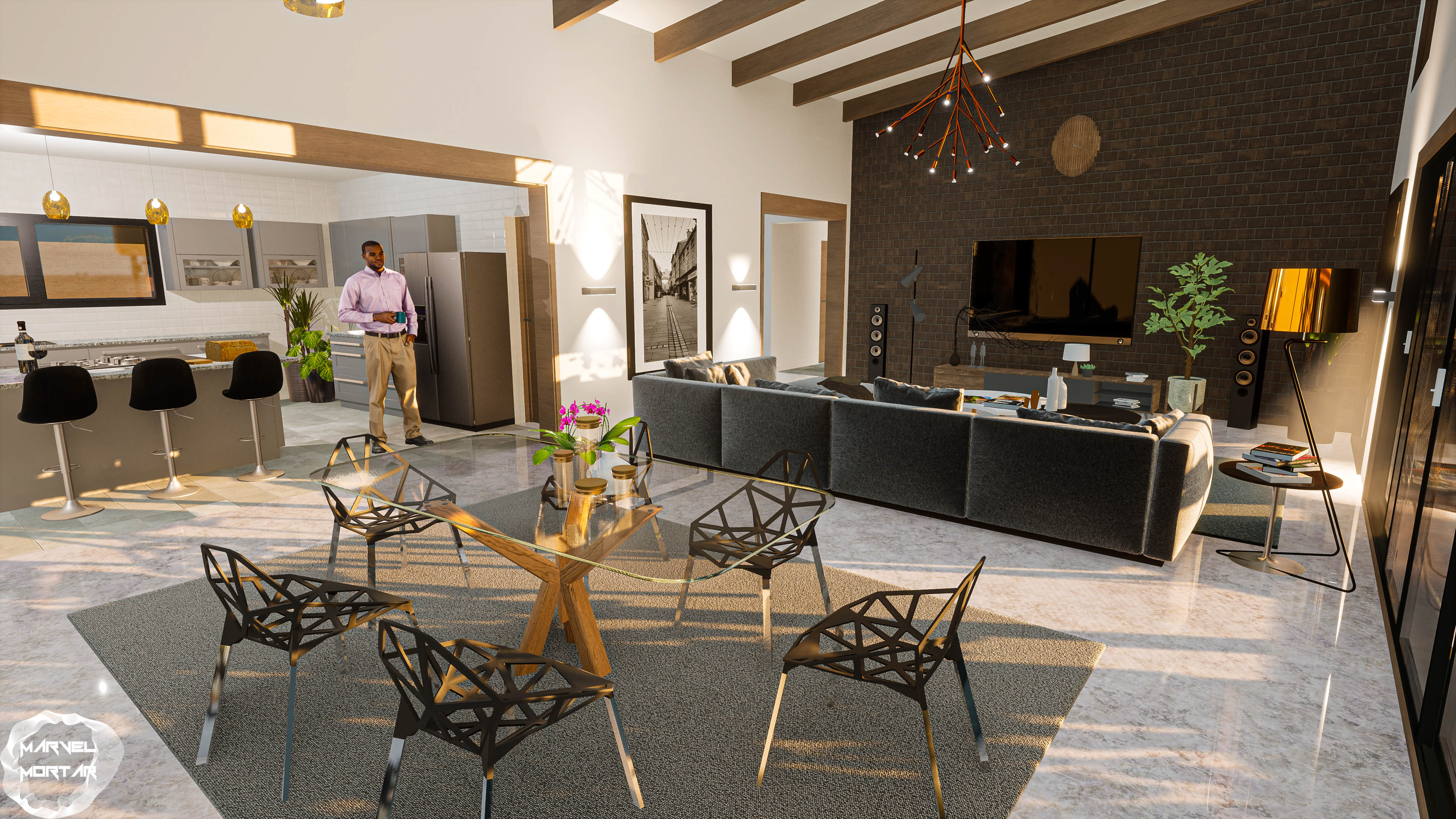 Contemporary Rural residential design family home, design utilizing common and spaces to promote more interactions.