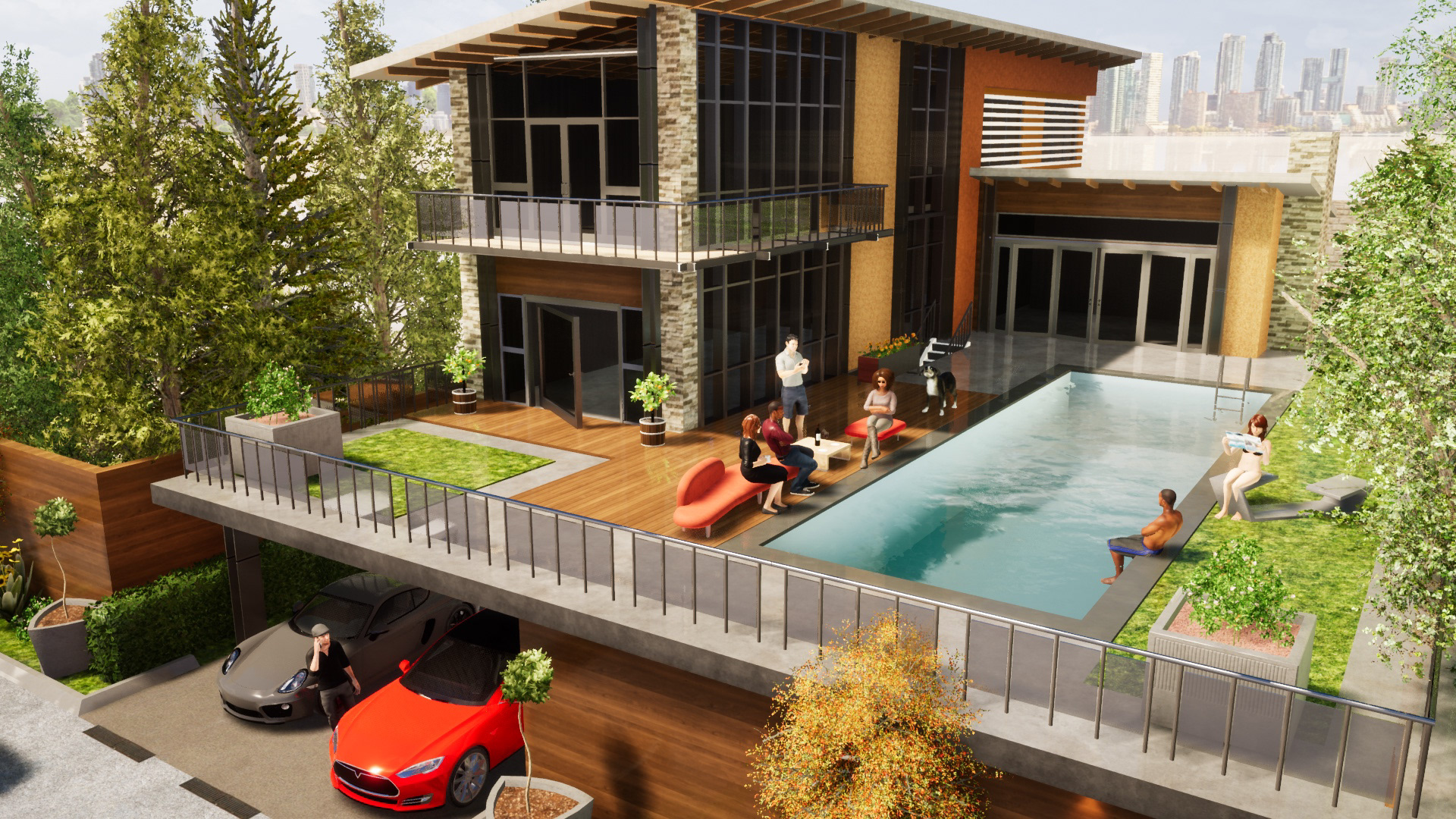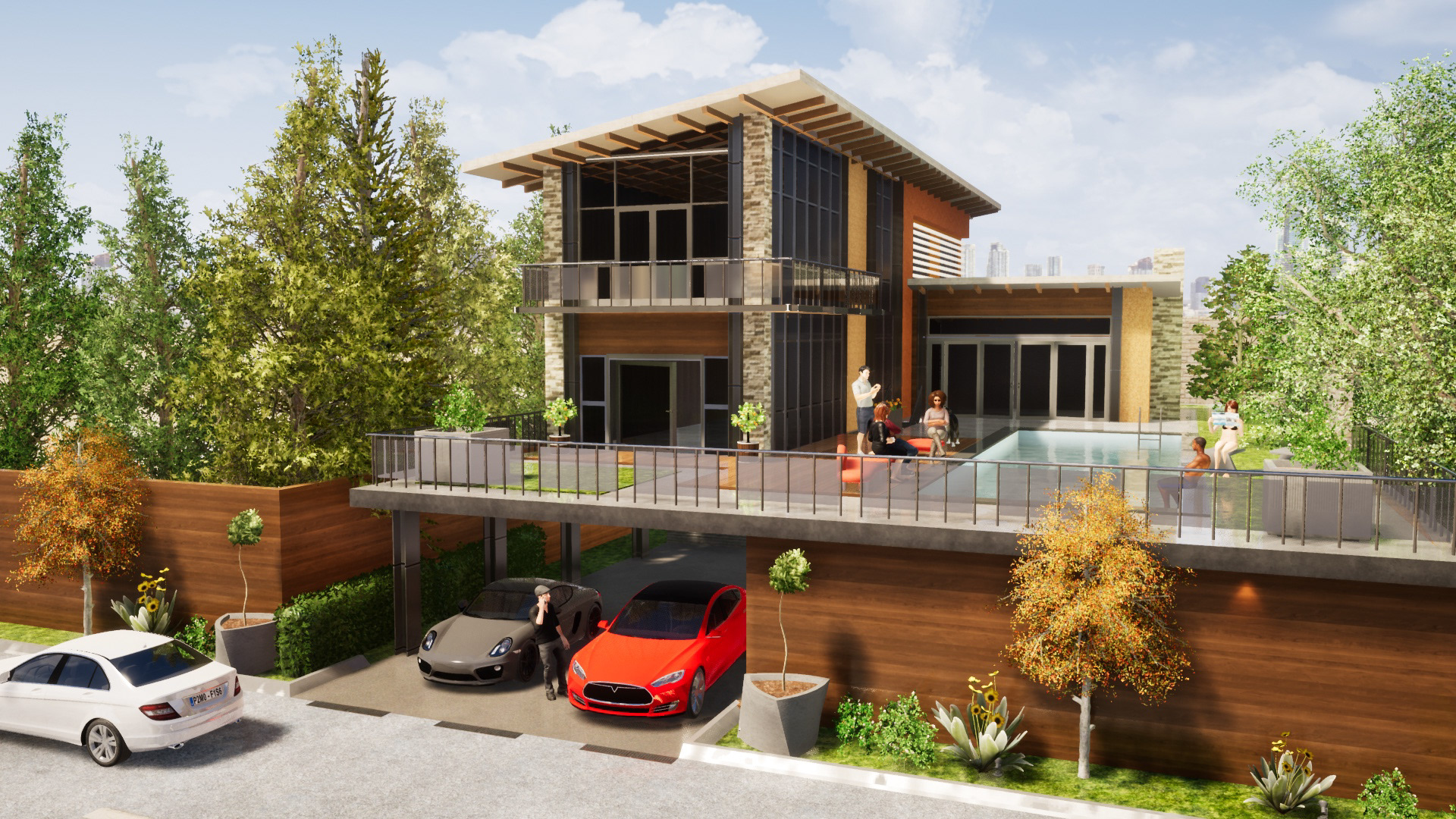 luxury Villa Contemporary design with the idea of straight lines , concrete and steel