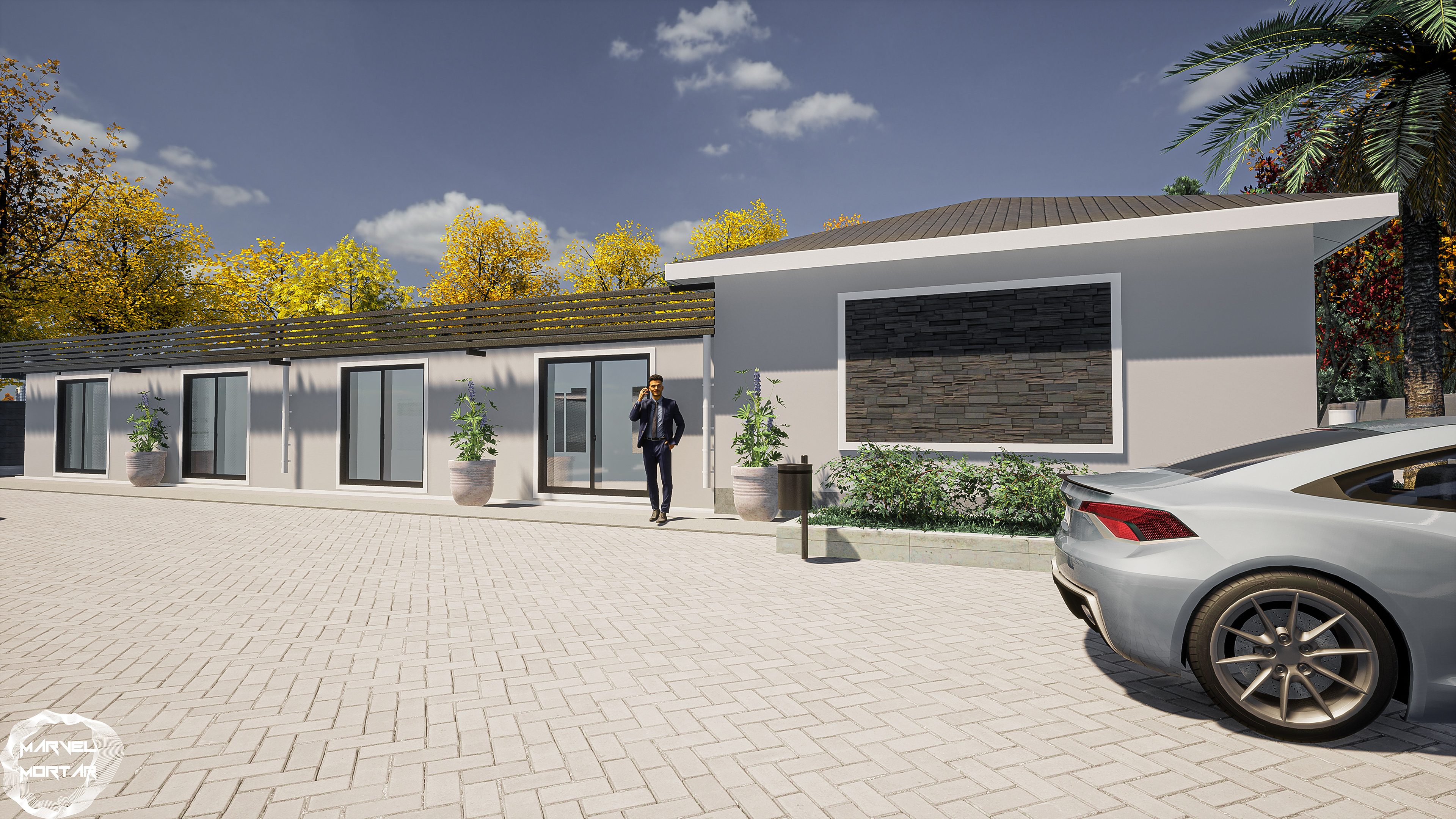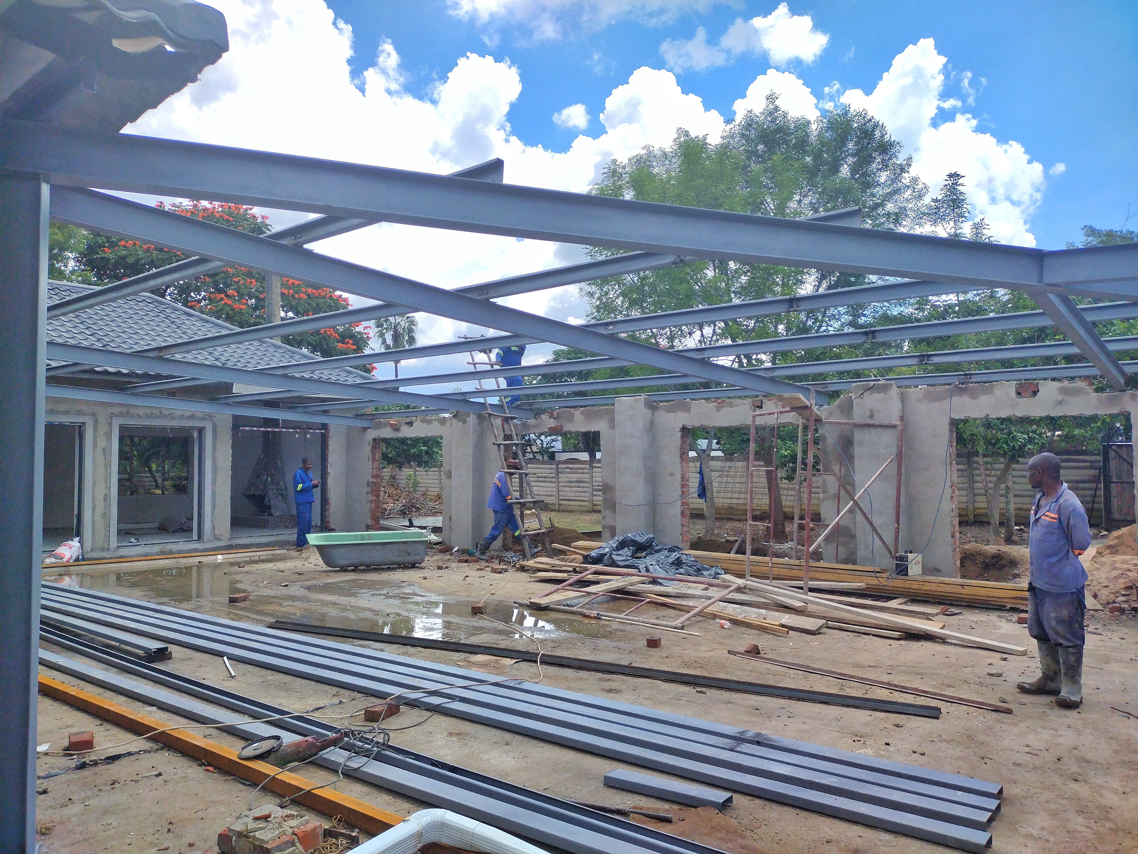 Renovation of an existing home to a private event hosting place and offices ,goal was to face-life the building , design a roof for the hosting area without any obstructions of pillars and multiple opening , replaster and paint with subtle colours .... design & build...